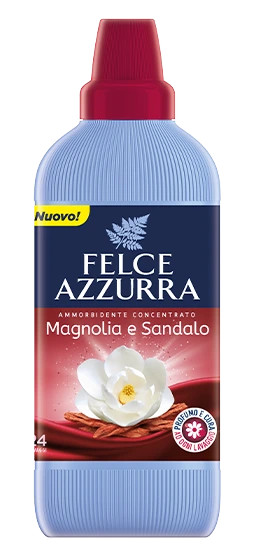 Produkt priamo z krásneho Talianska! Produkty Felce Azzurra sa okrem vynikajúcich čistiacich a ošetrujúcich vlastností vyznačujú predovšetkým jedinečnými vôňami. Verzia Magnolia e Sandalo je spojenie magnólie a santalového dreva . Zloženie s exkluzívnymi mikrokapsulami dodá vašej bielizni vôňu, ktorá vydrží 5x dlhšie. Produkt má navyše o 20 % aktívnejšie zmäkčovadlo. Balenie 600 ml vystačí na 24 praní.