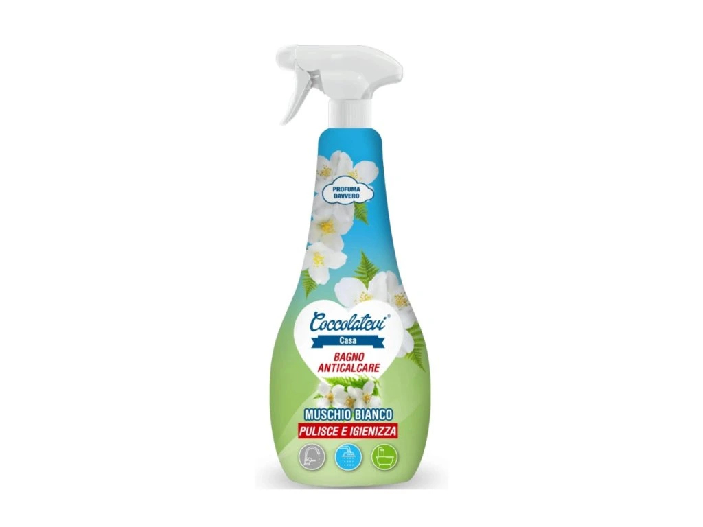 Coccolatevi Bagno– Odstraňovač vodného kameňa do kúpeľne s vôňou. Inovatívny a intenzívne parfumovaný čistiaci prostriedok, ktorý zaručuje prekvapivo čisté všetky povrchy kúpeľne. Odstraňuje stopy vodného kameňa aj zvyšky mydla a zanecháva príjemnú vôňu. Je vhodný na porcelán a batérie.