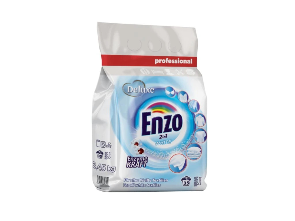 Deluxe Enzo prací prášok Professional 2,45kg 2in1 White je navrhnutý pre domácnosti, ktoré chcú spoľahlivo udržať biele prádlo žiarivo čisté bez zbytočného poškodenia textílií. Tento prací prášok preniká do vlákien a odstraňuje aj odolné škvrny, pričom šetrne chráni štruktúru látok a pomáha zachovať svieži vzhľad odevov.