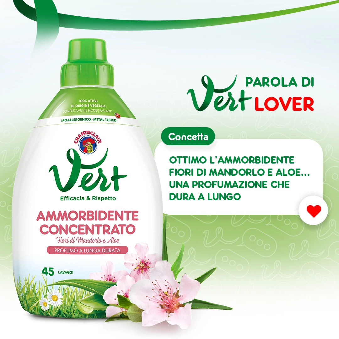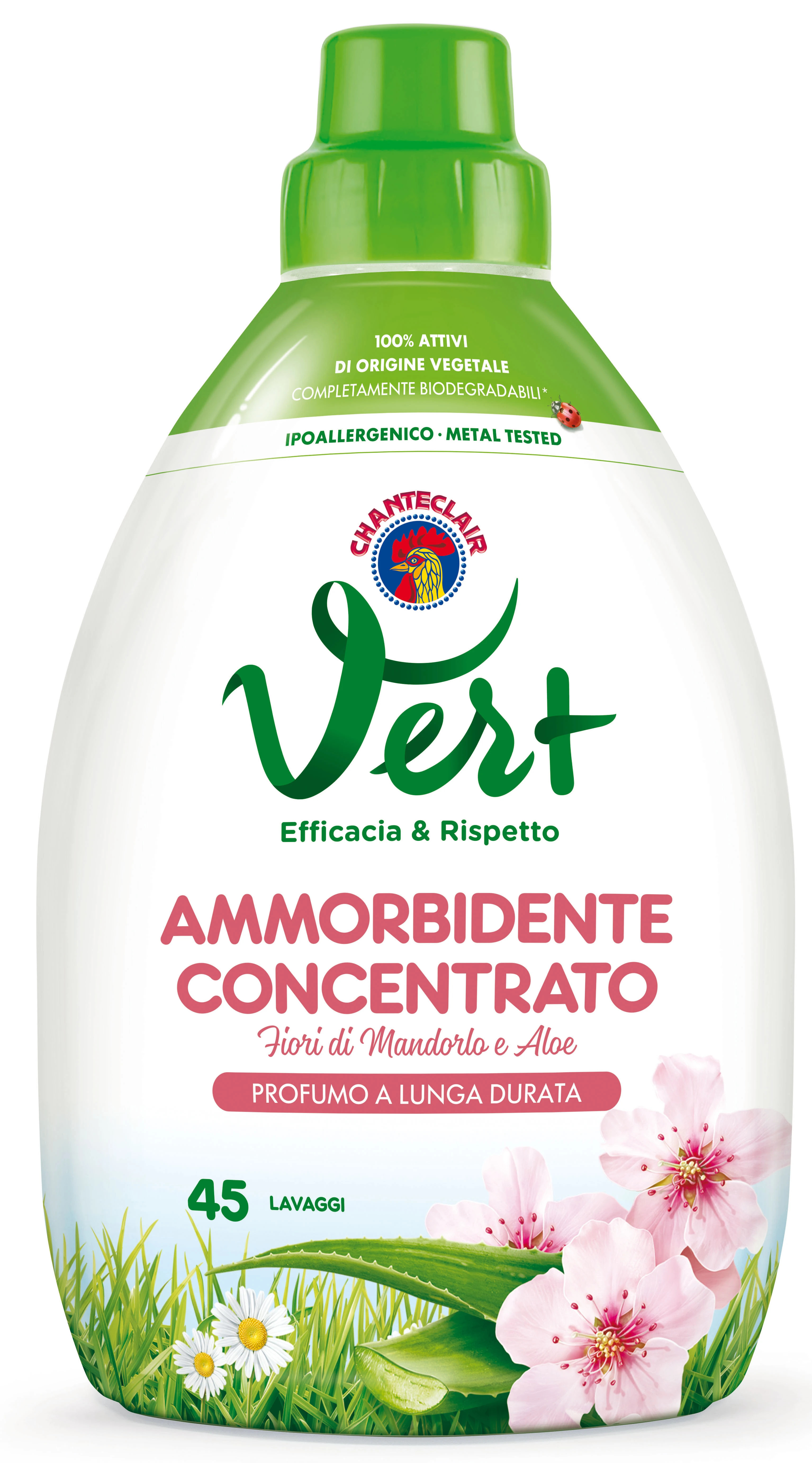 Koncentrovaná aviváž ChanteClair Vert Fiori di Mandorlo e Aloe ktorej zloženie obsahujé látky ktoré sa starajú o štruktúru každého vlákna, zabraňuje ich poškodeniu a vyblednutiu. Tieto vlastnosti uľahčujú proces žehlenia a eliminujú žmolkovanie tkanín. Aviváž poskytuje vysokú priepustnosť vzduchu, vďaka čomu je proces sušenia oveľa rýchlejší. Objavte intenzívnu vôňu a jemnosť.