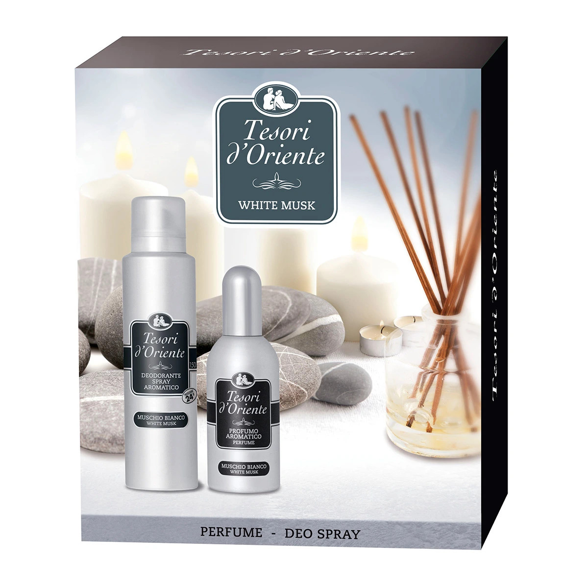 Tesori d´ Oriente darčeková sada Muschio Bianco- parfumovaná voda + deodorant Predstavujeme vám jedinečný set TESORI, ktorý vás prenesie do sveta bieleho pižma, zmyselných vôní a luxusu. Tento set je kombináciou luxusného parfumu a účinného dezodorantu, všetko je uzavreté v elegantnom balení. Čo obsahuje sada: Parfumovaná voda Tesori Biele pižmo (100 ml): Táto nádherná parfumovaná voda vás očarí zmyselnou a trvalou vôňou bieleho pižma. Elegantné balenie robí parfum ideálnym na nosenie v dámskej kabelke a poskytuje vám sviežosť a luxus v každom okamihu. Dezodorant v spreji Tesori Biele pižmo (150 ml): Účinný dezodorant v spreji vám poskytne ochranu po celý deň, chráni pred nepríjemným zápachom a poskytuje príjemný pocit čistoty. Výrobca: CONTER S.r.l. Viale Europa, 12 26855 Lodi Vecchio (LO) Italy, conter@conter.com, Vyrobené v Taliansku Distribútor: C4U TRADE, s.r.o., Antona Bernoláka 7, 010 01 Žilina, Slovensko info@cleaning4u.sk , www.cleaning4u.sk EAN: 8008970039107