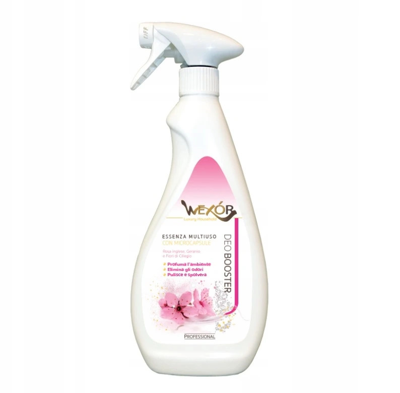 Wexór DeoBooster Rose je hyperkoncentrovaný osviežovač vzduchu: len niekoľko streknutí zaručuje bezkonkurenčný, dlhotrvajúci pocit čistej vône vďaka vysokej koncentrácii vzácnych esencií a prítomnosti mikrokapsúl.